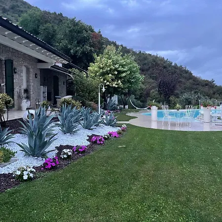 Die 1-Zimmer- Chalet Vela Natura E Relax verfügt über eine Terrasse mit Blick auf die Berge und ist 60 Autominuten vom Flughafen Verona entfernt gelegen.